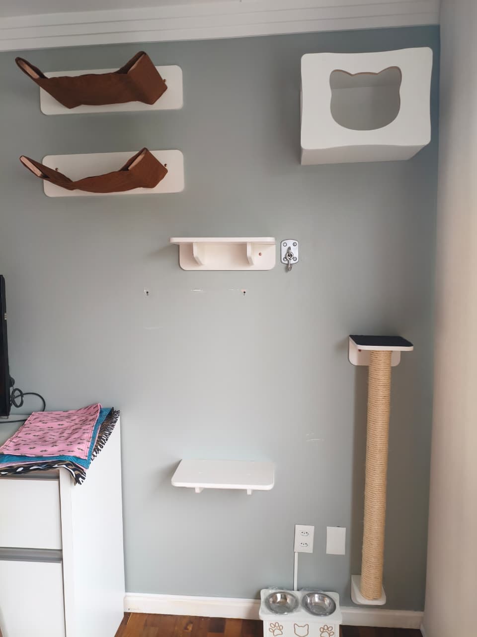 Nossos móveis são feitos de MDF de alta qualidade, planejados para a segurança e conforto dos seus gatos. Ao serem instalados em paredes rígidas com boa estrutura cada parafuso pode suportar até 20kg, para a maior durabilidade mantenha longe de espaços úmidos.